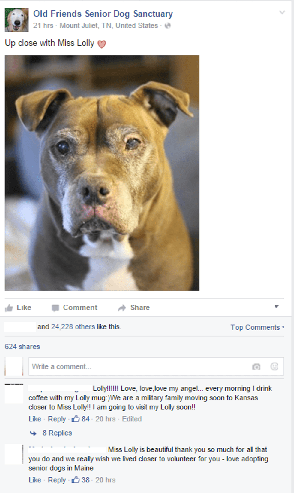 Some heartwarming comments on a photo of Lolly.