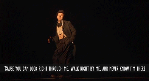 Of course, I also turn around and get mad the second people see me the way I perpetuate myself. I try to make myself not seen, I try to act like I'm not there.