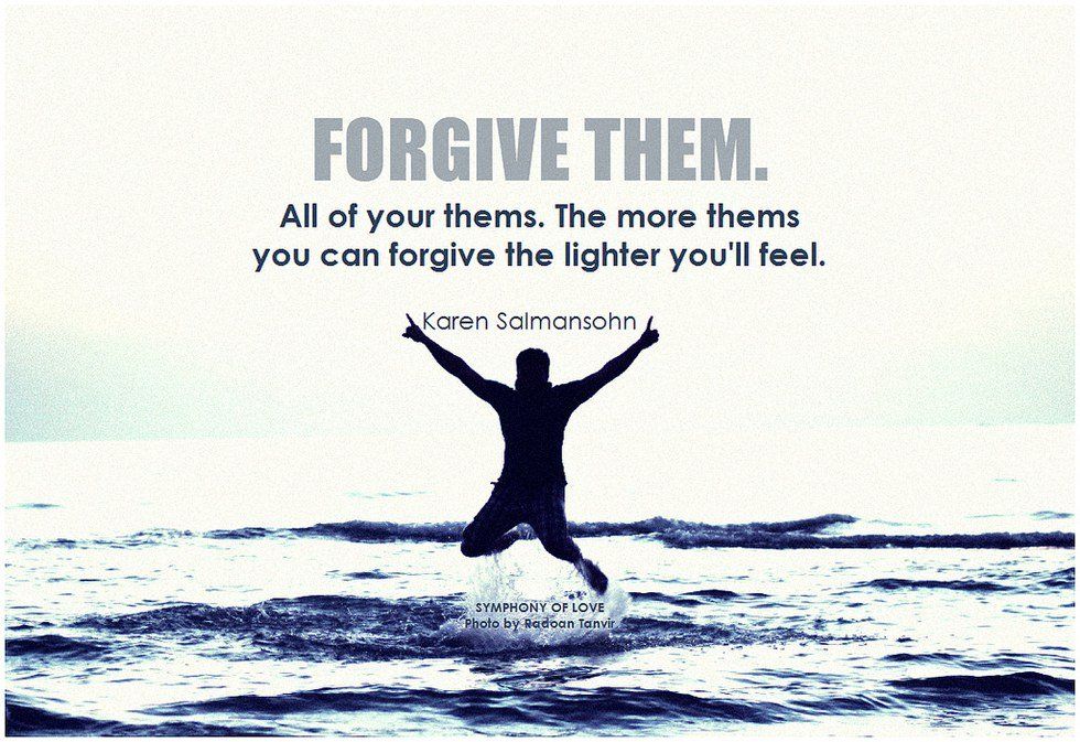 2. Don’t rob yourself of your own happiness. Forgive people. Don’t let yourself be a pushover. If someone repeatedly insults or hurts you, it’s time to leave.