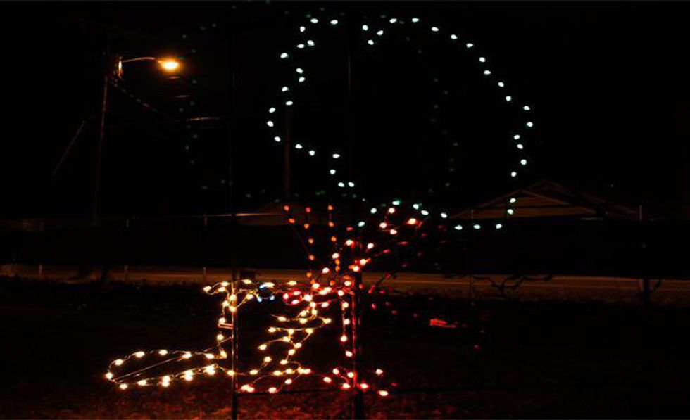 Every year around the holidays, my family goes to a display of Christmas lights. It's rather impressive the number of decorative and colorful lights set up. You drive the path and are greeted by colorful interpretations of elves, snowmen, reindeer, and several Santas all made entirely out of Christmas lights. There's even free cookies, hot chocolate, and a live Santa Claus you can let your kids sit on if you aren't the type to question suspect elderly men wearing costumes to attract young children. We've been going here for years, and it simply doesn't seem like the holiday season without visiting it. However, one decorative light display had always left our family confused.