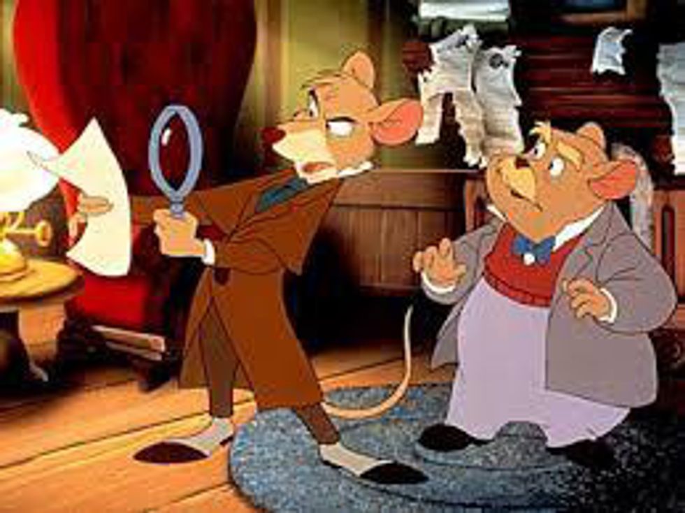 The movie follows the detective Basil, who is essentially Sherlock Holmes, and his partner Dr. Dawson, who is basically Watson. They are solving the case of a woman's missing father who has supposedly been kidnapped by the crime king-pin Ratigan.