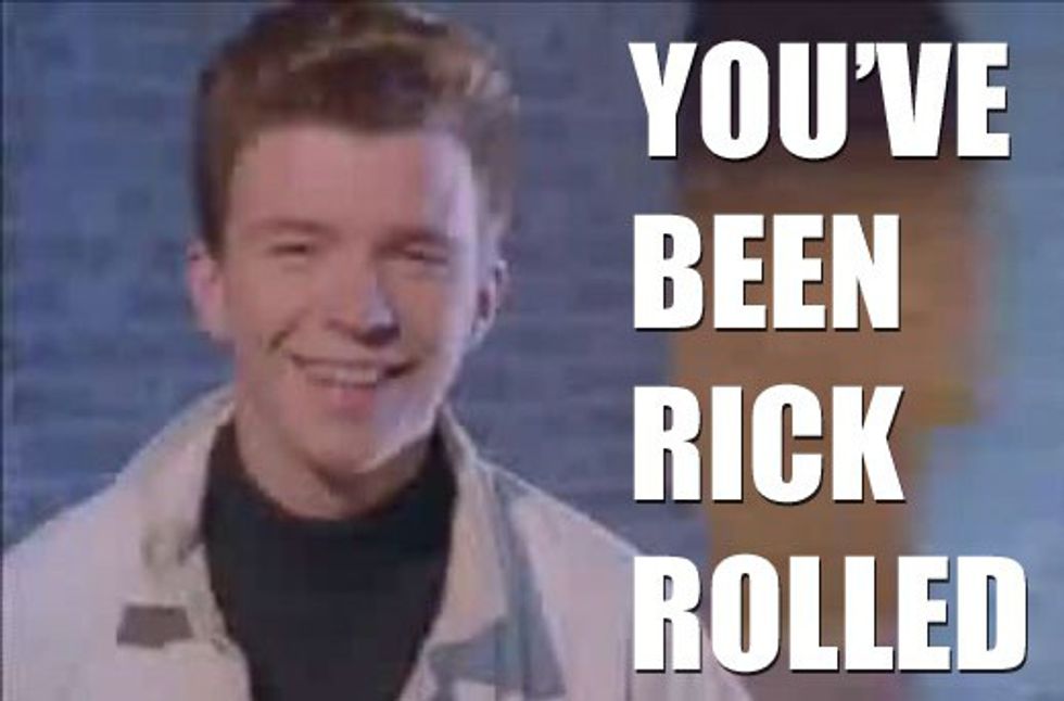 If you clicked on the link under #2, you have joined the ranks of millions who have been a victim of Rickrolling. For those who didn't click on the link or know what Rickrolling is, it's when someone sends you a link telling you it's one thing when it's actually a link to the music video for the song "Never Gonna Give You Up" by Rick Astley.