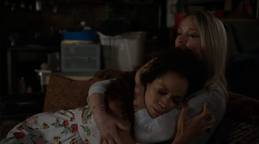 The couple is not only two women, but also Stef is caucasian and Lena is African American. This couple goes through the different experiences each one faces based on race, but still come together to be happy with who they are.