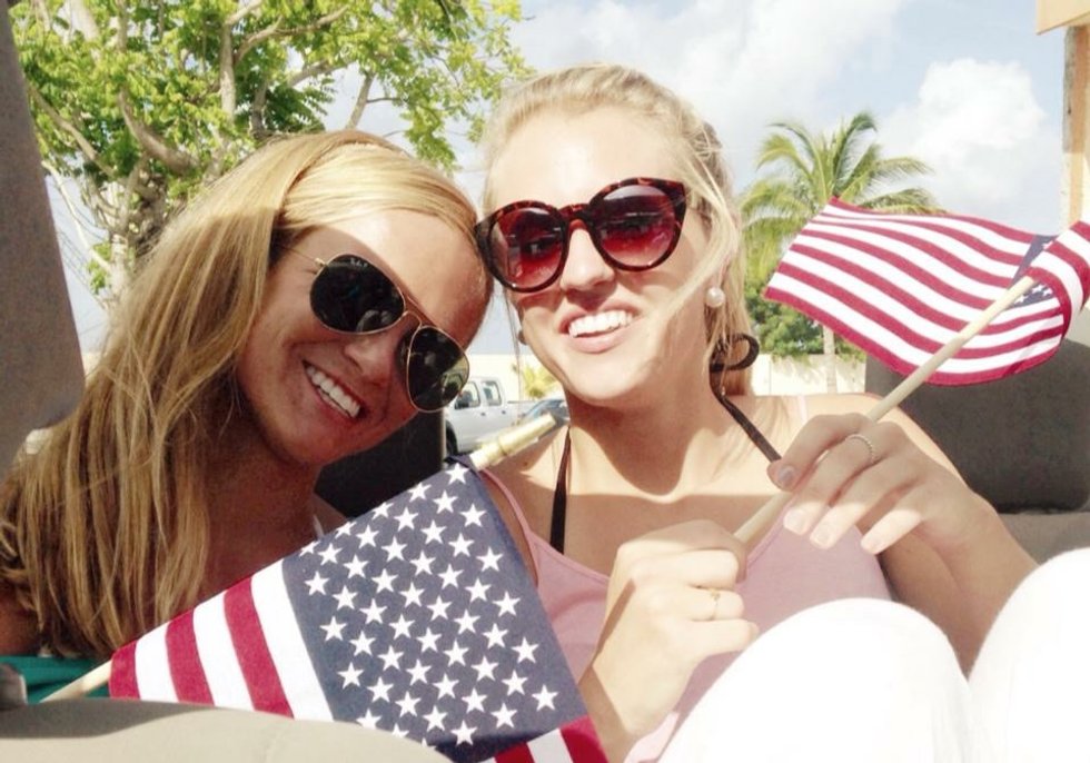Next, we have two colligate enemies coming together as one to celebrate our great country: Amanda DioGuardi (left) from the University of Florida and Peyton Peck from Florida State University.