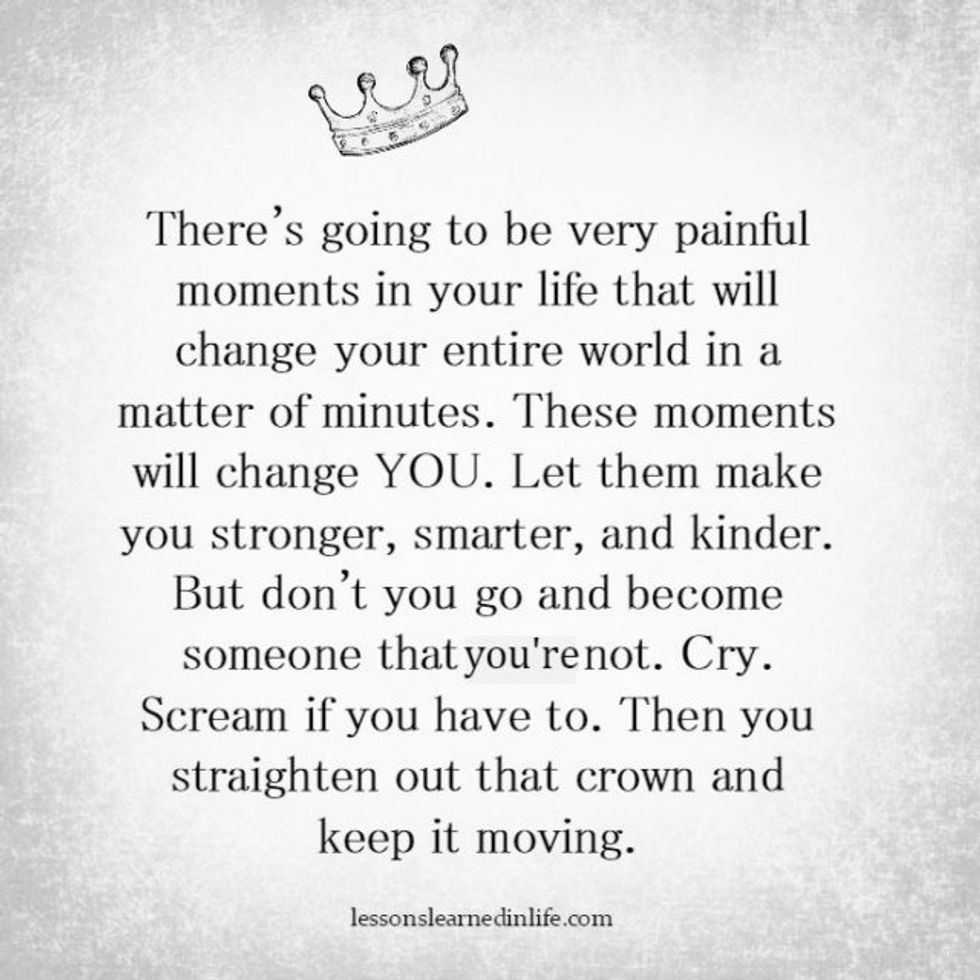 While I still feel sad at times, I have reached a point where I know it will be okay. I know that everything happens for a reason and I will always be grateful for the friends that I had last year. They brought me out of my shell and made me feel accepted. I always say that in a way I am grateful that this happened my sophomore year of college and not my freshman year because I would have left the school if it was my first year. Don't get me wrong, I thought about leaving this year, but I realized that running away from the problem does not solve it. I would not have been running away because I did not like the school anymore, I would have been running away because I was scared to be completely on my own. It is weird to think that the greatest part of my freshman year of college was meeting all of my friends and hanging out with them, but I never really experienced anything for myself. I did not sign up for any clubs or go on any other backpacking trips. I think we are all naive and do not think about the possibility of the people we love to be around not being there for us anymore. The greatest possible outcome of this was the realization that you can not rely on other people to make you happy. It is a tough pill to swallow, but ultimately it is something that everyone needs to realize at some point in their life.