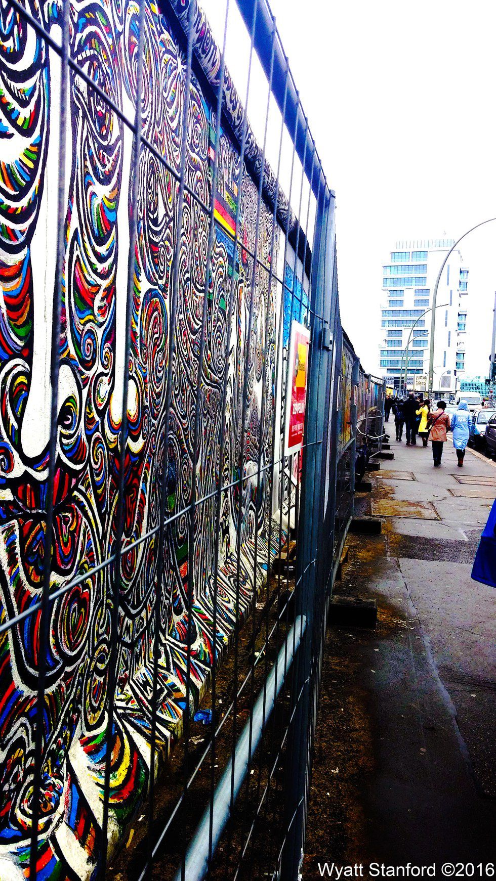 (Photo caption: Berlin Wall in East Berlin. I wanted to capture the length of the wall, and the people walking next to it.)