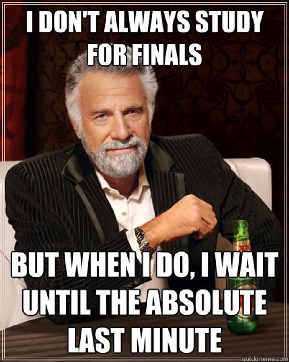 It is that time again. Finals are just around the corner and I can't say that these are the feelings people are having at this point with finals.
