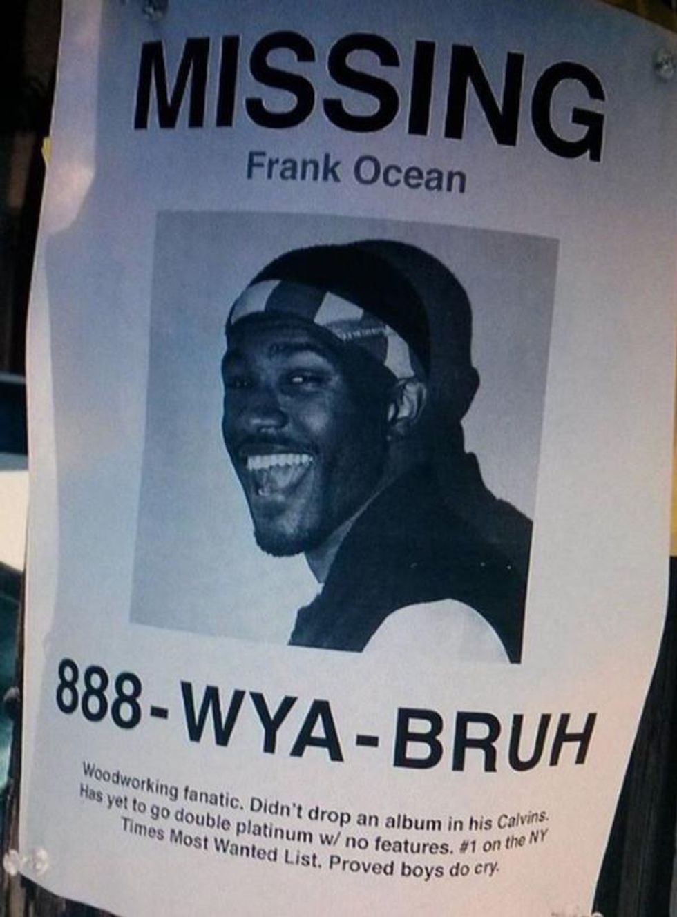 Unfortunately, when Ocean decided to lay low for a while, people lost their minds wondering when he was going to be releasing another epic album. Rumors and misinformation about Frank Ocean's new album's release were spread all over the internet making it appear that Frank Ocean was just playing with our feelings and that was just not a good look for him.