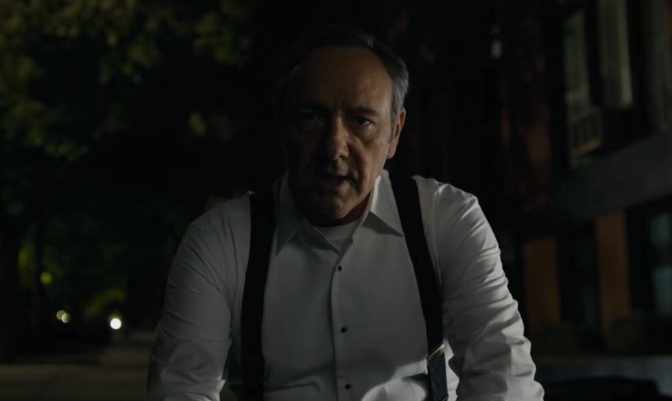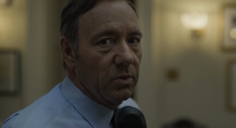 From bribes, to blackmail, to throwing people under the bus -- literally -- Frank does it all. But unlike many of the politicians on Capitol Hill, Underwood didn't buy in with the hopes of leaving with a larger cash out. The irony of this scene, his scheming not withstanding, is that it flushes out, in a twisted way, a noble trait about our anti-hero. Knowing that money is only as powerful as long as it lasts, he's in Washington with the desire to govern, to rule. And like all ruling, Frank understands with a reluctance shown in a preceding scene, that part of it involves paying, and being paid by the right people.