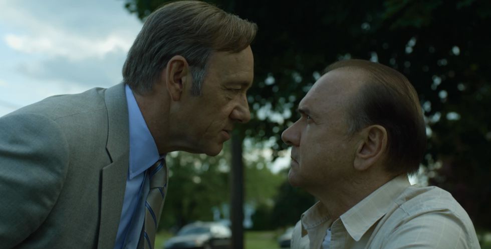 Campaign ads, waving at constituents, shaking their hands, that seems to be the formula when we witness delegates prevail in a race. But its not so cut and dry. An election isn't just about making it over the finish line, its about making sure no one gets there before you. And for Frank, it minds burying a feel skeletons while getting some blood and dirt beneath your fingertips. Something he implies in this menacing, elucidating scene.