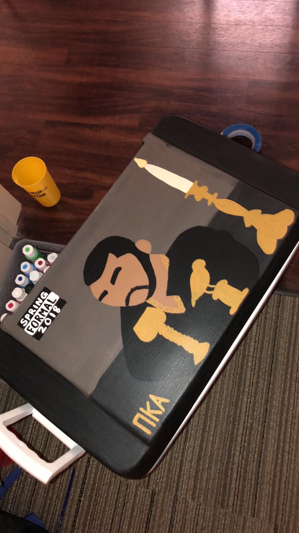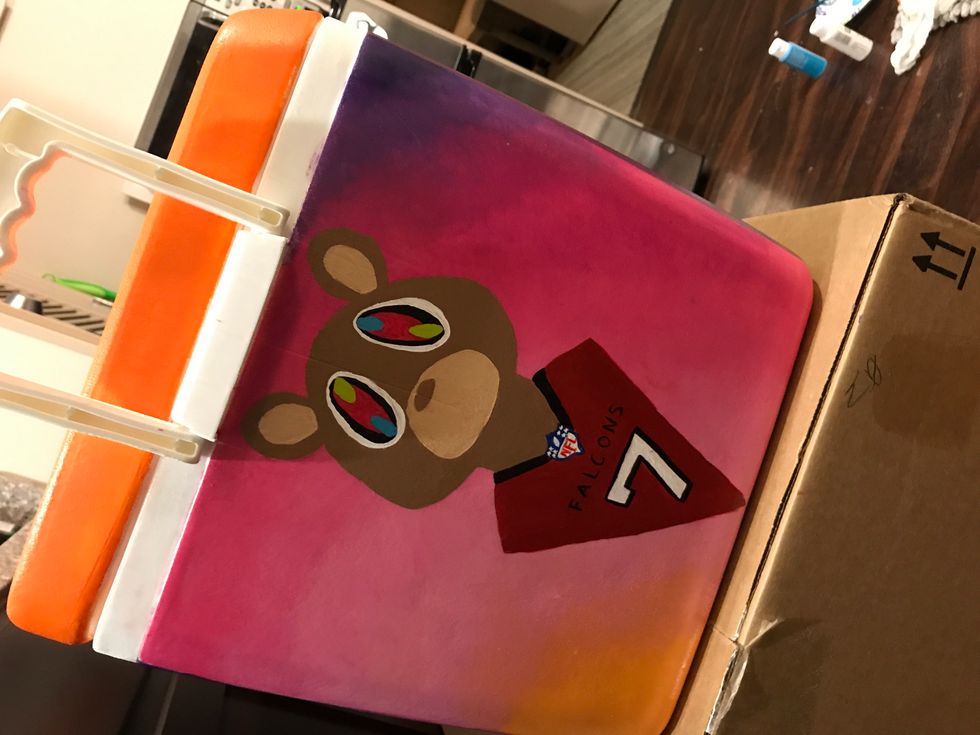 This is the very first side I ever painted! My inspiration was my boyfriend at the time's love for Kanye, and the Atlanta Falcons.