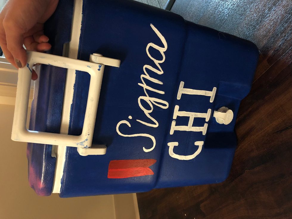 So to kick off Art Archives, I am sharing with you some of the works of art (if you want to call it that) I have created on coolers. Formal coolers are my favorite projects to work on, and I thoroughly enjoy the entire process. Sanding, priming, coming up with sketches of designs, and painting the actual cooler.