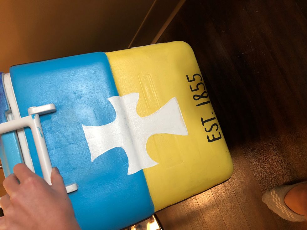 If you go on Pinterest and look up ideas for formal coolers, this design is bound to pop up. I wanted to add my own twist to it though by replacing the iconic World's Best Boss coffee mug with a one of a kind ATO flag mug.