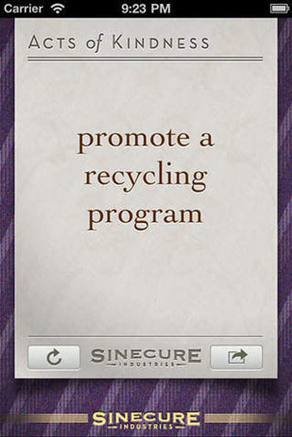 This app gives simple suggestions every day to make a positive difference. It also gives you the chance to donate to share your good deeds directly with your friends. Available on iTunes.