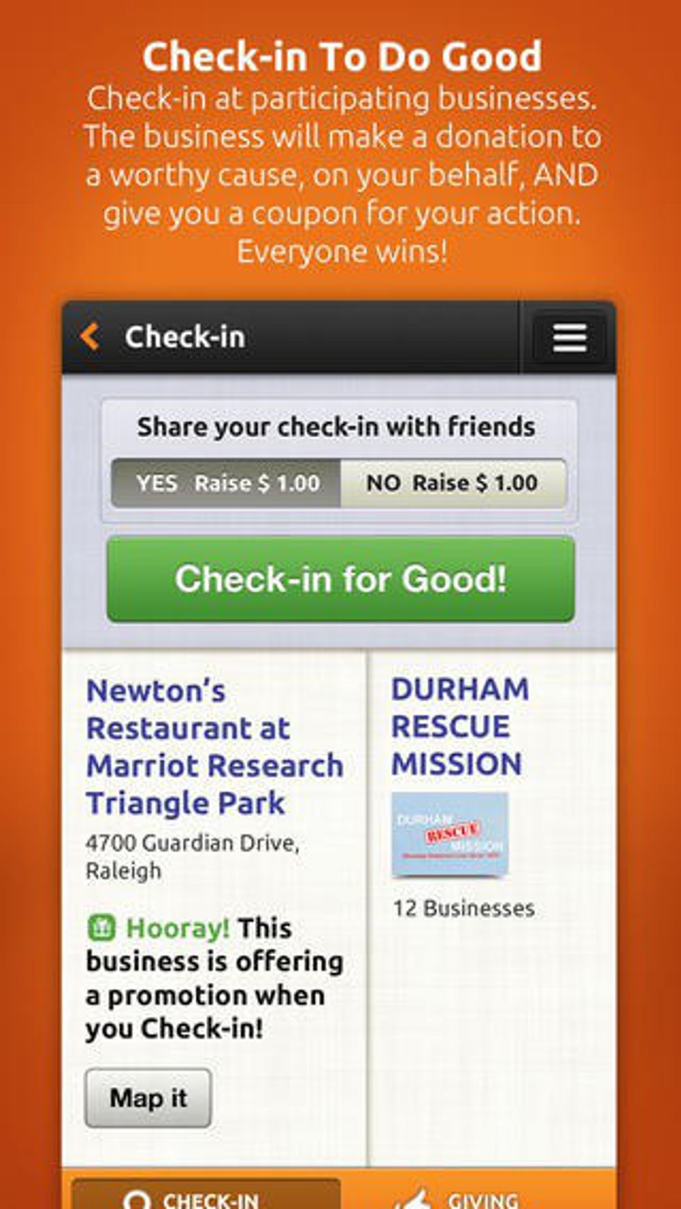 Similar to FourSquare, Check-in for Good allows you to check in to participating businesses that then donate $1 to a cause of your choosing. In return, you get coupons and incentives to go back again. Another win-win? I think yes. This app is available on iTunes and Google Play.