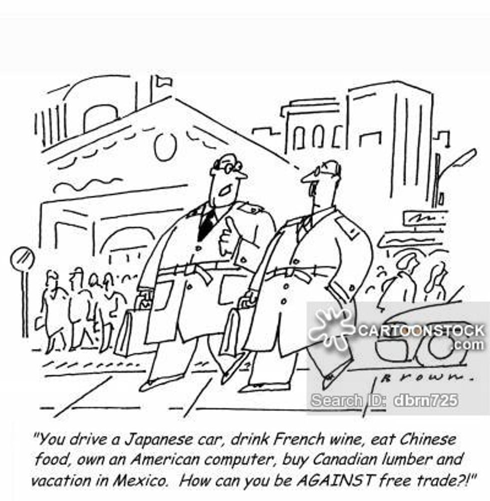 Well Mary Sue, I’m glad you asked. Free trade simply refers to the import and export of goods among countries without any kind of barrier imposed on the goods. Such barriers include tariffs, levies, and quotas that determine how much of a good from another country can enter a domestic market and whether the exporter needs to pay a tax for selling goods abroad. Countries have historically enacted these barriers so that domestic industries face less competition from abroad. Exporters that wish to sell a good in another country have historically paid a fee for doing business in that country, usually in the form of a tariff, which is a kind of tax. This cost is paid at the time of shipping and then passed onto the consumer in the form of higher prices. If a good produced abroad is more expensive than a similar good produced domestically, the consumer is inclined to buy the domestic version. In fact, the consumer is almost always inclined to buy the cheaper of two of the same good, assuming that the quality of each is comparable. Therefore, in order to protect domestic industries, governments have often favored barriers to trade. This has broad implications on the development (and stagnation) of local industries and employment levels.