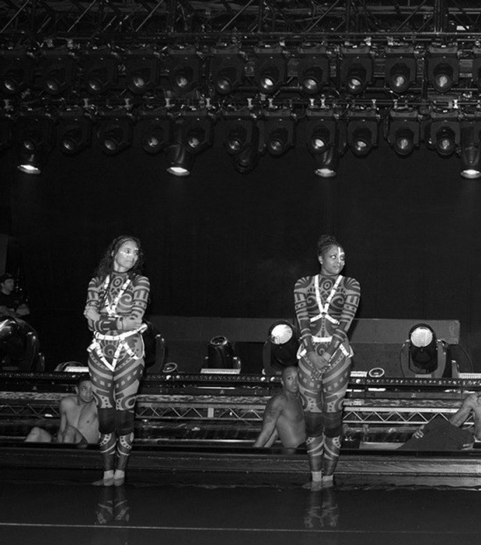 The performance starts with an expert of Martin Luther King’s I Have a Dream speech playing over the speakers while Beyoncè’s back up dancers march up to the stage. Her back up dancers, as is widely known, are all black women. In this particular performance there are black spirals decorating their skins, contrasting sharply with the white harnesses they are wearing. These white harnesses could be seen as a symbol of oppression. They are still bound by chains like their ancestors; bound by the chains of white supremacy.