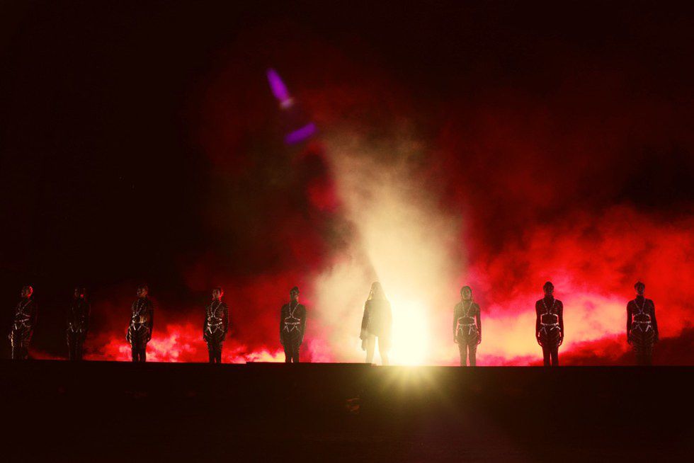 The dancers all eventually come to stand in a line, Beyoncè in the middle. White light shines from behind her, giving her the appearance of an otherworldly figure. Then, you see that they are all standing in a pool of water. Beyoncè begins to sing, “Tryna rain, tryna rain on the thunder, tell the storm I’m new.”