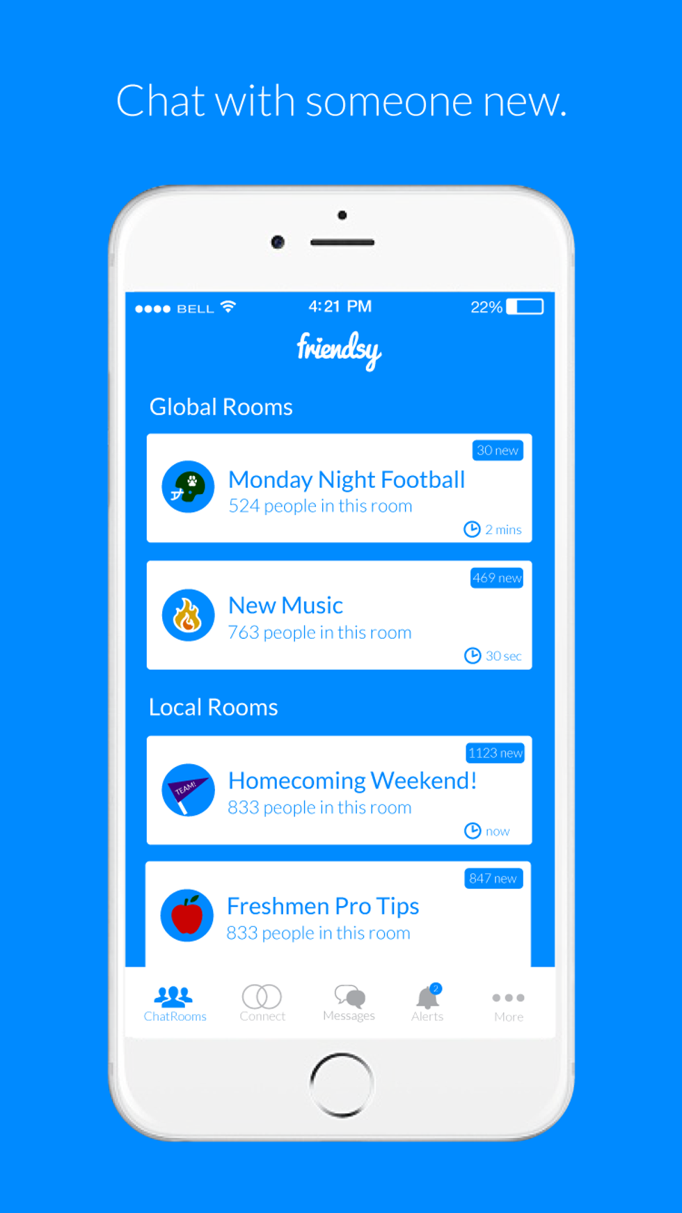 Friendsy understands that it can be awkward holding a conversation with a stranger. It can be hard to come up with something clever to say on the spot, and you don’t want to say anything embarrassing. No worries! You can press the “prompt” button to view dozens of conversation-starters or questions that can keep the words flowing. If you find yourself bored with your options, you can join chartrooms ranging from “cheesy pickup lines” to “bad movie ideas” to talk to other college students.