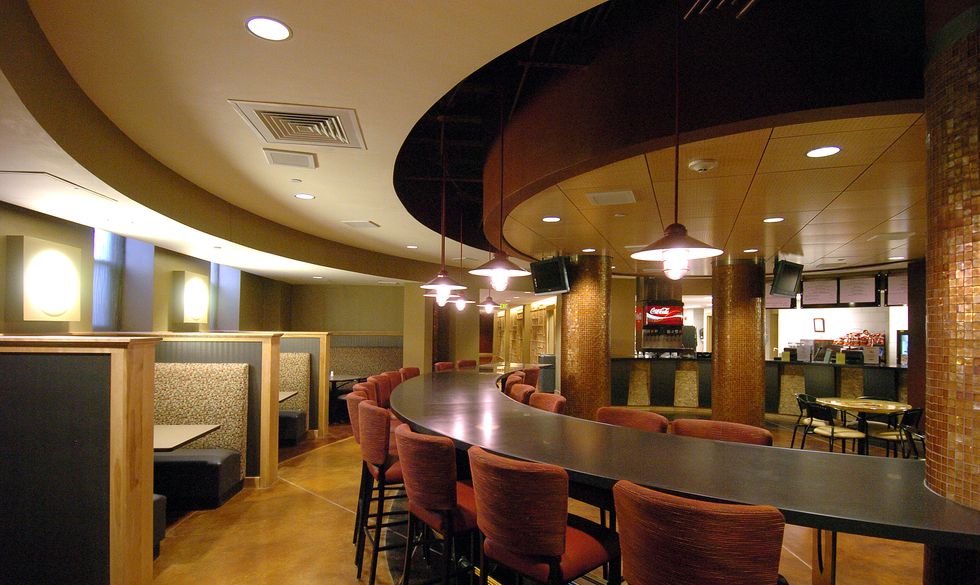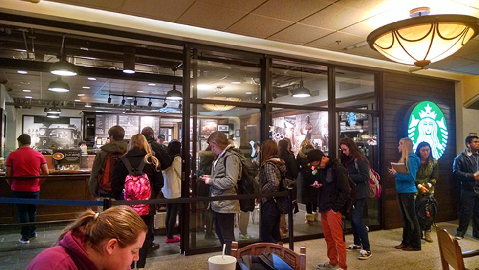 Between classes on campus, I spend can spend three to four hours at a time just studying in the Union. It's great because if you need a pick-me-up, there are so many options right downstairs. Plus there are couches and love seats upstairs, too. Way more comfortable than a wooden chair.