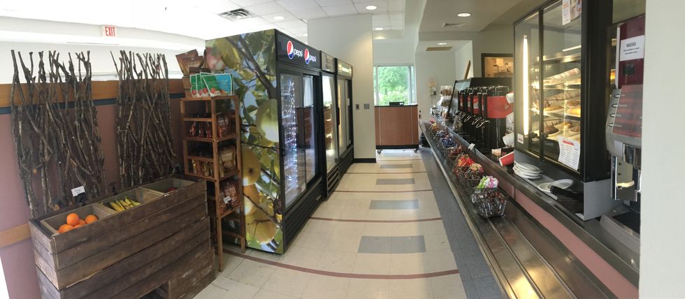 You’ve got the Donnelly Delicatessen; The Cabaret, where the quesadillas, popcorn chicken, and the milkshakes are to die for (the Freshman Fifteen will not be my friend this year. We’ll see how this goes.); two Starbucks, in Hancock and the Library; and the Dyson Café, whose paninis are what gets me through the day, or at least my First Year Seminar.