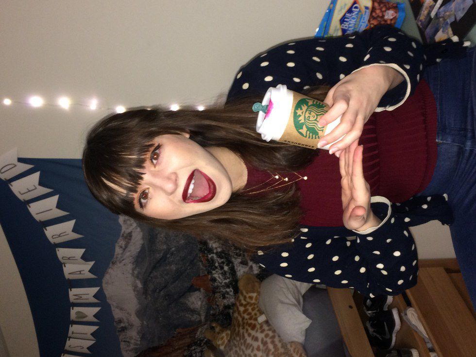Pick up starbucks chai latte and heart sprinkled cake pop. Attempt to appease sleeping demon (successful!). She has awoken.
