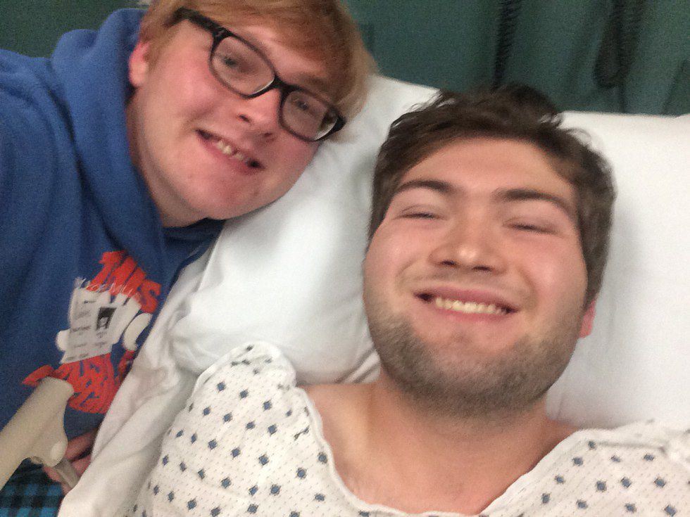 This picture was taken at about 3:30 in the morning at the hospital. The reason for the visit was because Andy had a seizure at 1 am and I woke up to him on the ground in extreme pain. An ambulance rushed him to the hospital and we found out he had disjointed both shoulders, broke one shoulder, and chipped the other. In the midst of me having a mental breakdown at 3:30 in the morning, freaking out about what had happened, he turned to me and smiled and at that instant I knew everything was going to be OK. He is a fighter and he always reassures me that things are going to be alright. He gives me the strength I need to get through hard times while also getting himself through hard times. He is a true role model.