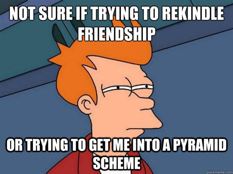 What I don't appreciate are friends who haven't talked to me in years suddenly reaching out to me only to try to sell me something.