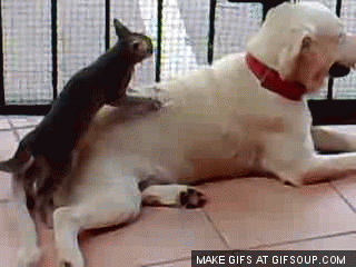 Puppy Phoebe doesn't give massages anymore; she gets massaged by cats.