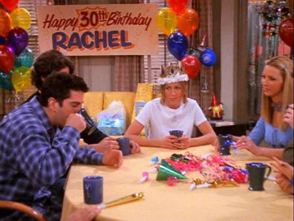It is Rachel's turn to turn 30 and she is not happy about it. This leads the group to look back at the past year and all of the experiences they had turning 30. This episode is one of the all around funniest.
