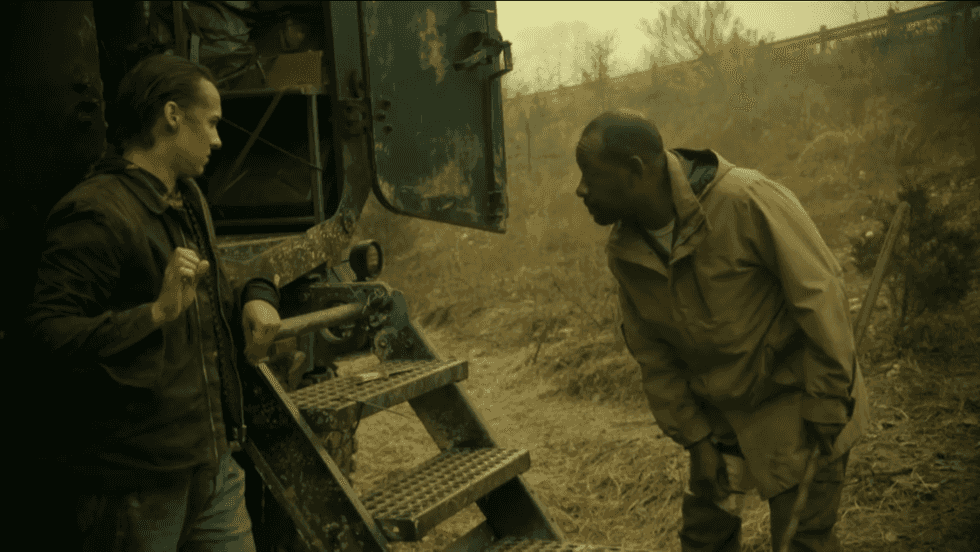 This scene seems really interesting to me, a character which is presumed Nick, appears to be stalking Morgan as he hobbles along. As we have seen from promotional photos, Morgan and Nick do indeed have a meeting in an area that looks similar to this. I think that Nick is very skeptical of people now, especially if Proctor John is still a key figure in the series, which I would assume he is since he was introduced in the season finale last season and his fate is still unknown.