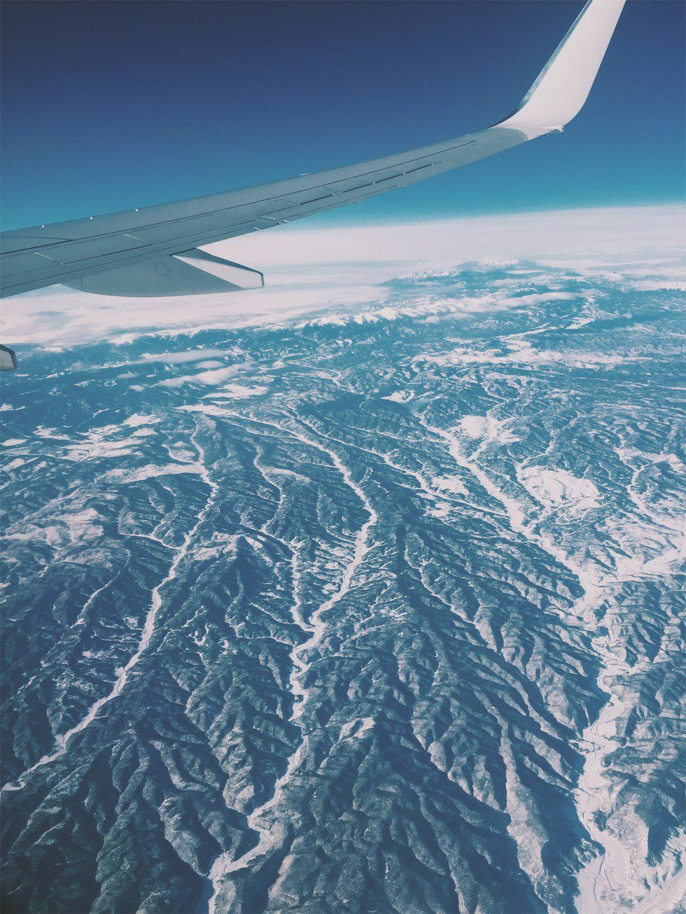 We ascended, fluffy clouds taking over the brown ground. I began dozing off, my mind in a state of peace that seems hard to achieve on the ground. At 40,000 feet up, with no internet connection, text messages, or people I know, the world seems just a little more calm to me. Everyone keeps to themselves and there’s an I feel like there is an unsaid rule that plane rides are pretty much personal time. that As we flew over mountains and rocky terrain, topped with white snow and hugged by foggy layers of clouds, sleep couldn’t even tempt me to keep my eyes off the beautiful world below. Even though these are sights I’ve seen over and over again, I was in awe. I remember thinking that despite all of the things society does to produce beauty - fit bodies, fashion, cool buildings, makeup - nothing could compare to the natural world below me. Nothing compares to the effortless, perfect beauty of the natural world. We try so hard make ourselves and our surroundings so aesthetically pleasant, when the existing world around us already is multiples more beautiful than anything we can create. My mind thudded with these little revelations and I fell into a light sleep.