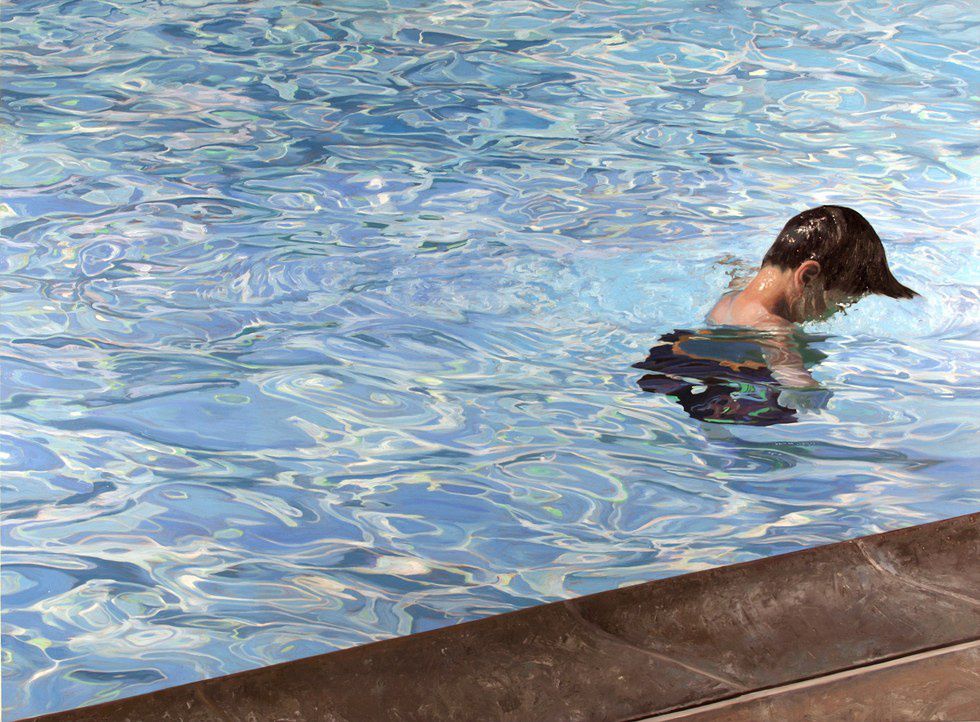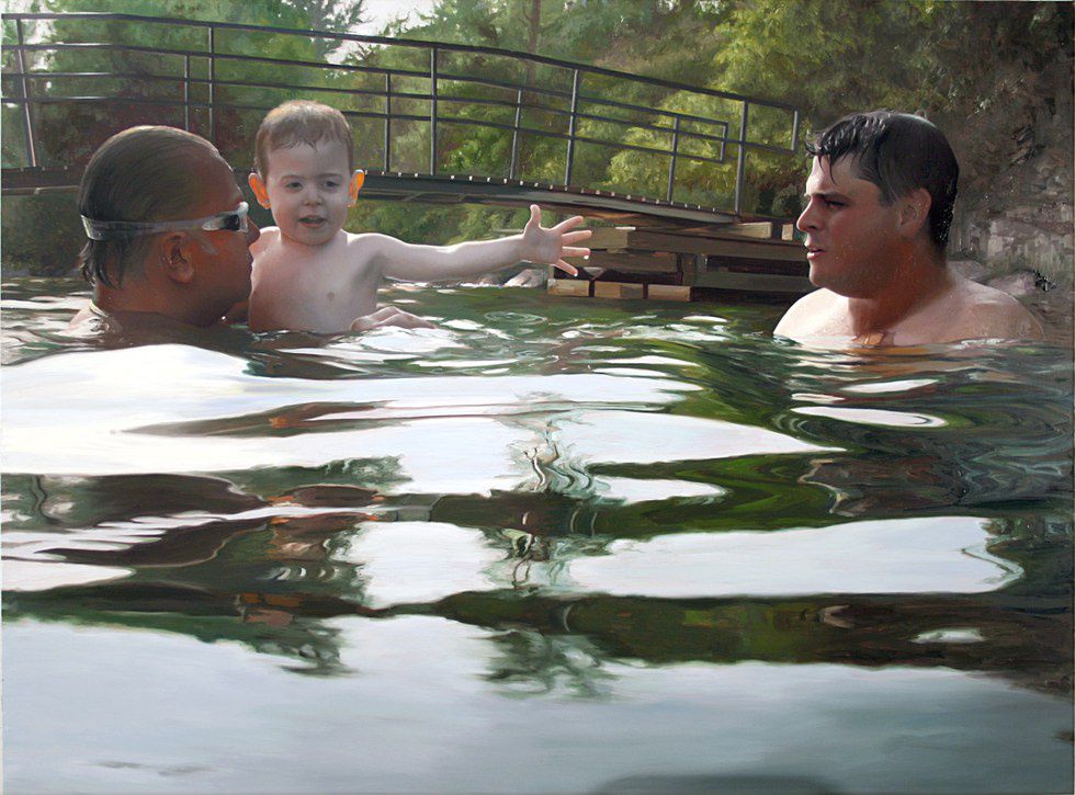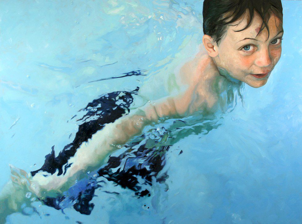 She continued her talk with describing her training at the New York Academy, and being taught by Vincent Desiderio. Monks enjoyed painting figures in interiors at the time, and told the audience she was making her own scenes. She did this by having people in her life, such as her boyfriend and close friends, pose for her, in costume. She compared her process to the work of Eric Fischl. The artist described her subject matter by stating "the idea takes you and you just have to run with it." Monks said that half way through her last semester, there was a major breakthrough with her work, and that she started to 'see.' It was at this time Monks started painting water. She told herself that it was going to be hard, but enjoyed the challenge.