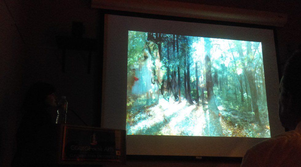 The following are a few of Monks' paintings she presented during her lecture on November 4th, 2016, in Columbus State University's Corn Center for the Visual Arts, Crit Space 1.
