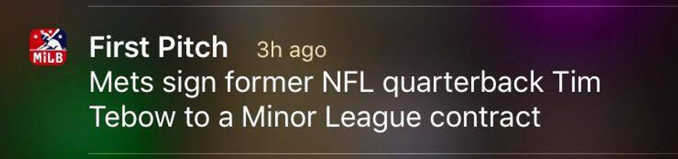 However, one thing all of us can learn from this is to never give up. Tebow's dreams of playing professional football might have ended, but his dream of playing professional baseball is just beginning.