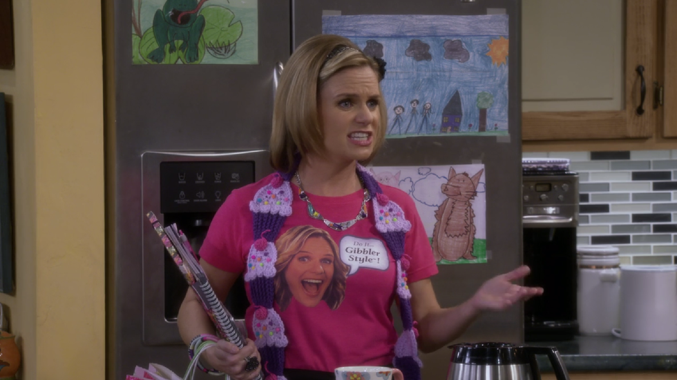 Back in the day, Kimmy always wore the strangest outfits -- even by 90s standards. Now that Kimmy is grown up, mostly, she wears more mature clothing. Except these scarves. They are hilarious and awesome and I want to make them!