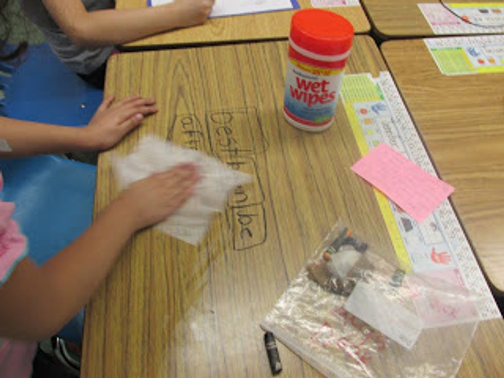 The best part is you clean off the germs right along with the crayon! I also have my kiddos write on my rainbow table during guided reading.