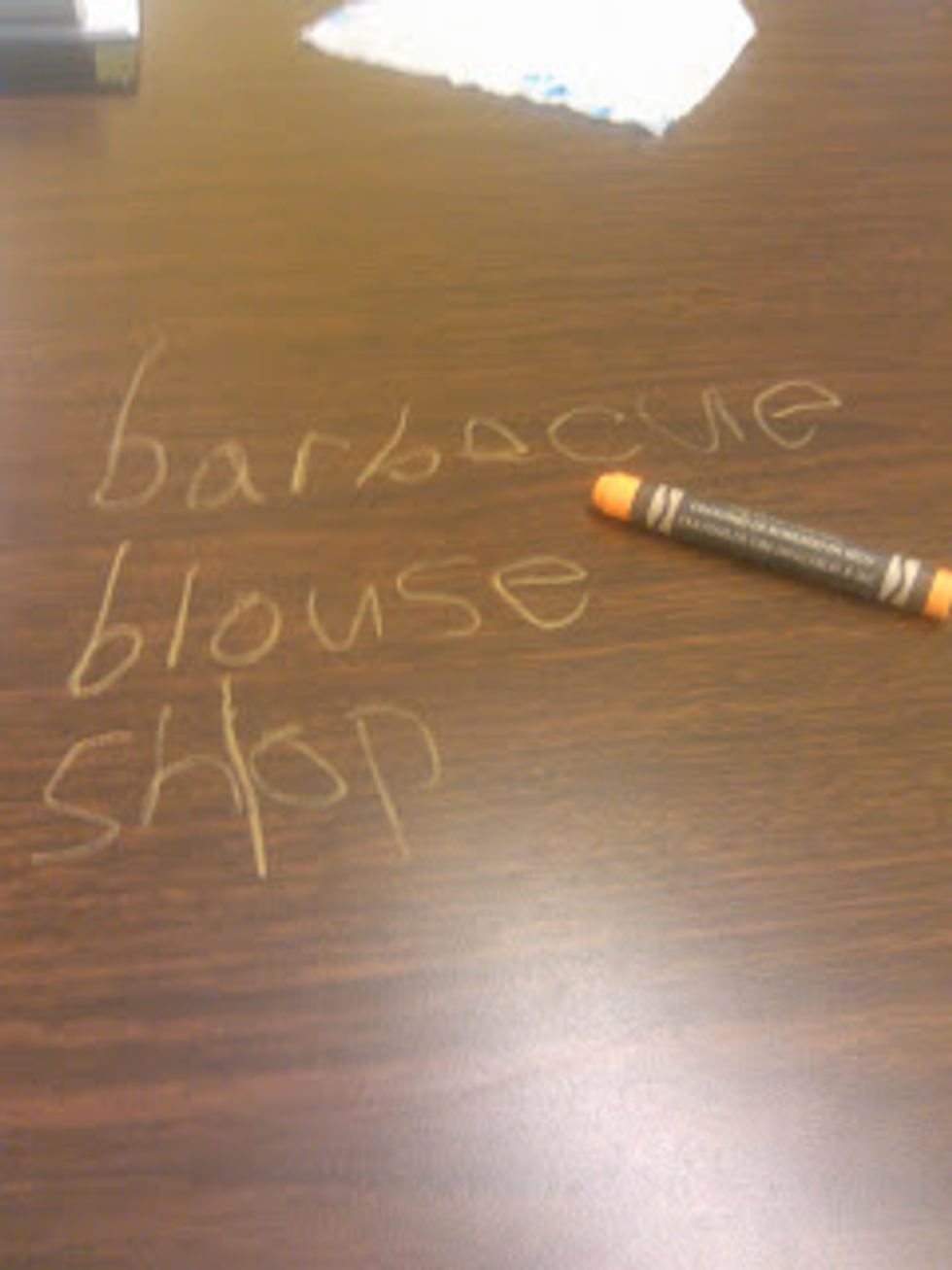 The kids all finish their work when they get to use the dry erase crayons because feels a little naughty to write on furniture!