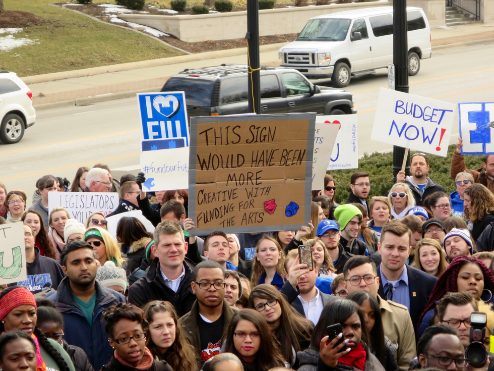 The state of Illinois has gone almost a whole year without a budget, and this has taken a huge hit on higher education. The lack of funding to the universities this year was a huge shock for college students. Students were unaware that the universities were struggling in the first place, and it seemed like overnight the problem had become a hundred times more urgent. Students are fearing that they may not get to finish their semester or start the next semester. Universities are hosting on and off campus rallies in order to get the attention of the state legislature. Students are scared, faculty are scared, and surrounding communities are scared.