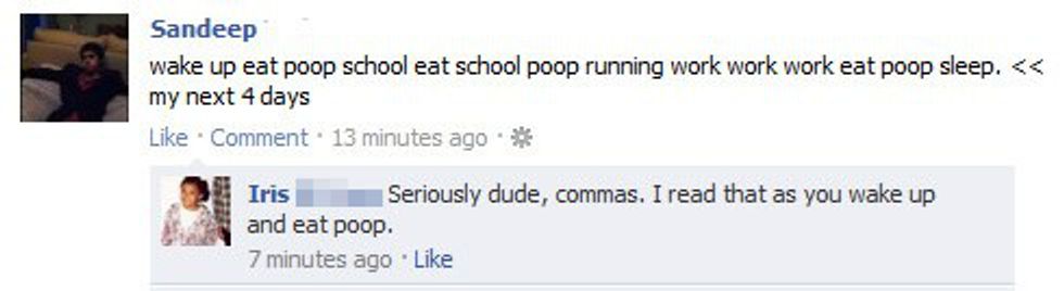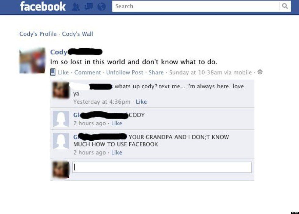3. When your grandparents have Facebook and they comment irrelevant replies to your status. In all honesty, though, this is pretty cute!