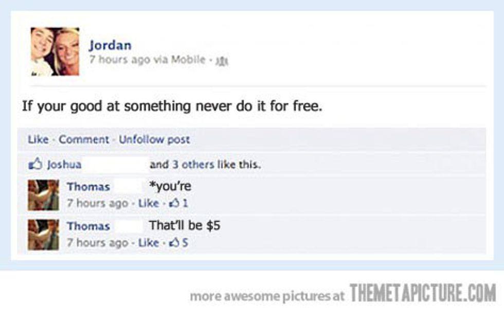 Good one Thomas! If only Jordan knew the "never" in his status was definitive.