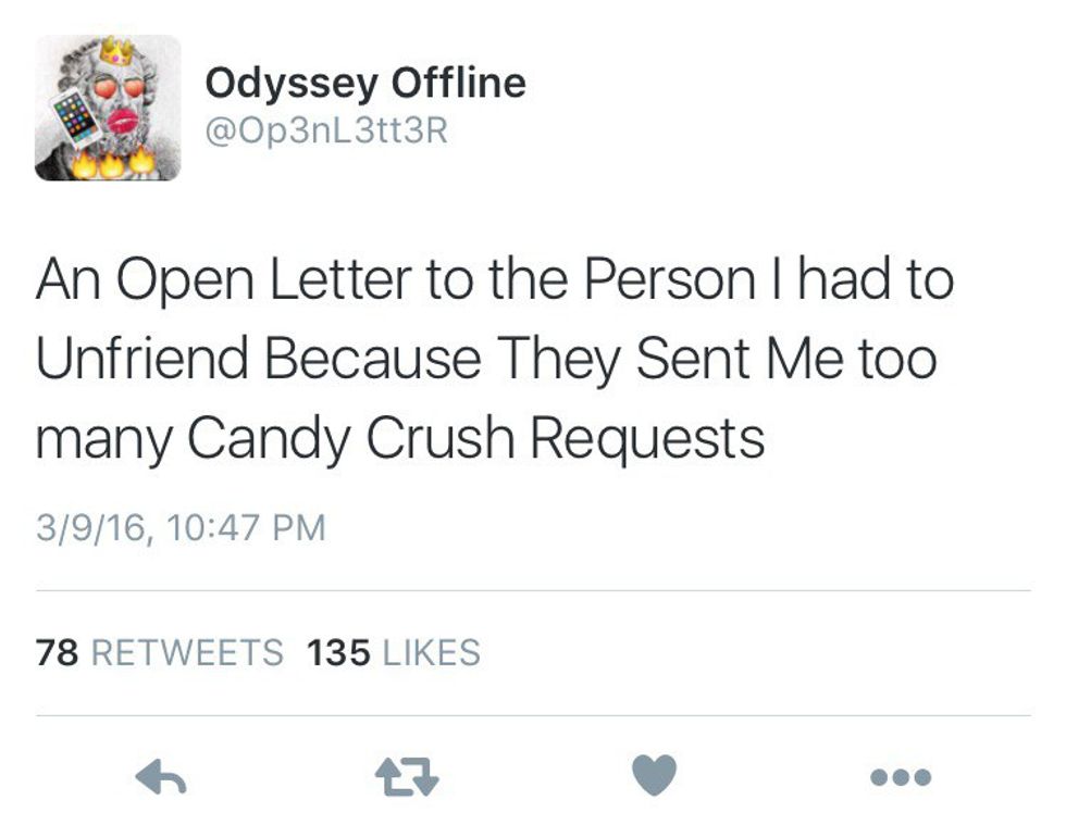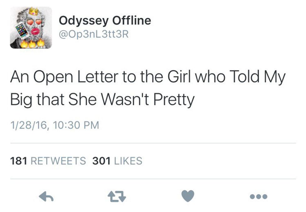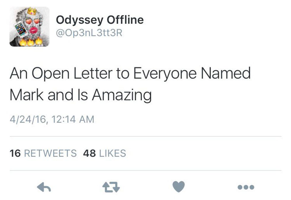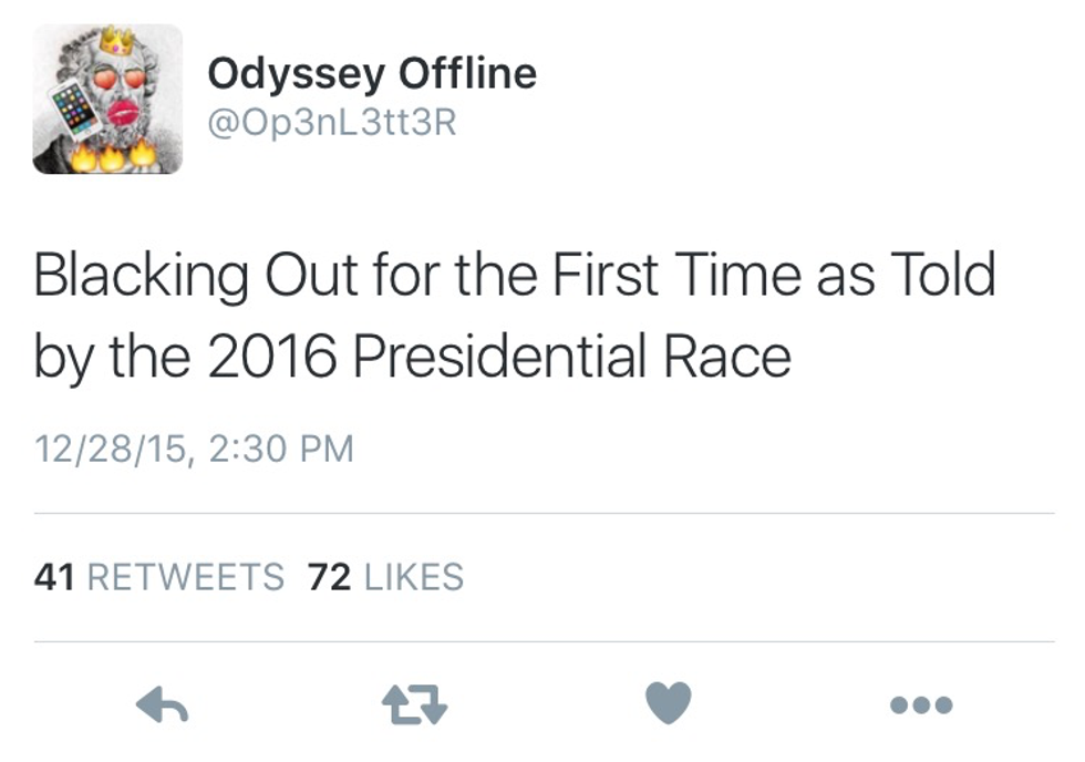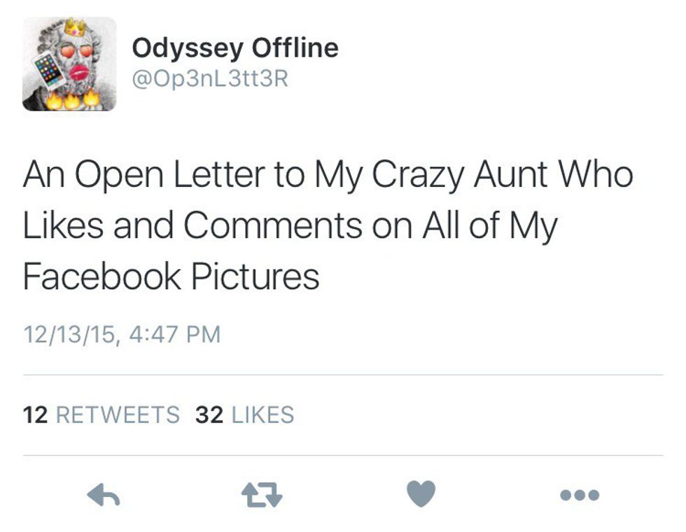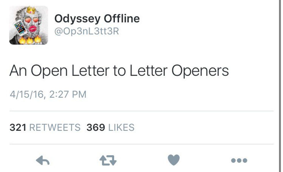 A friend of mine showed me a parody twitter account called Odyssey Offline (@Op3nL3tt3r). The account basically mocks everything under the sun about the Odyssey and everything they think it stands for. I will admit that the account has some pretty funny tweets, however a lot of it is over-exaggerated and full of misconceptions. And for someone who hates the Odyssey so much, they sure have a lot of time to rant about it.