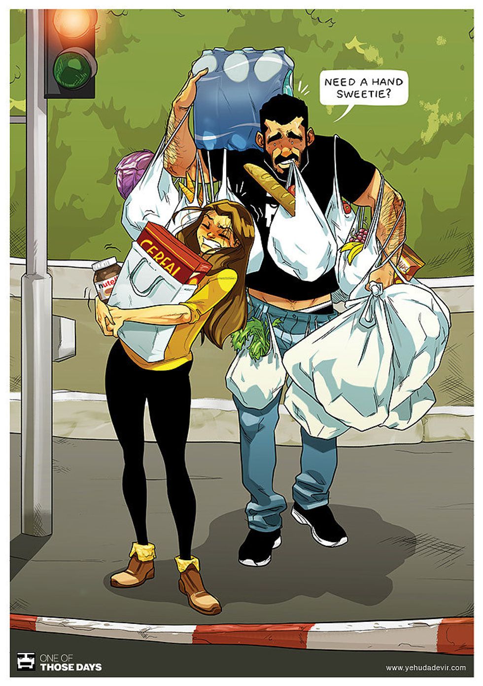 Some time ago I introduced you to Yehuda Adi Devir, a Tel-Aviv based artist who illustrates adorable comics about his everyday adventures with Maya, his wife. I have to admit that those gorgeous comics from Yehuda's ongoing series "One of Those Days" conquered my heart and so I couldn't NOT share more of my favorites with you.