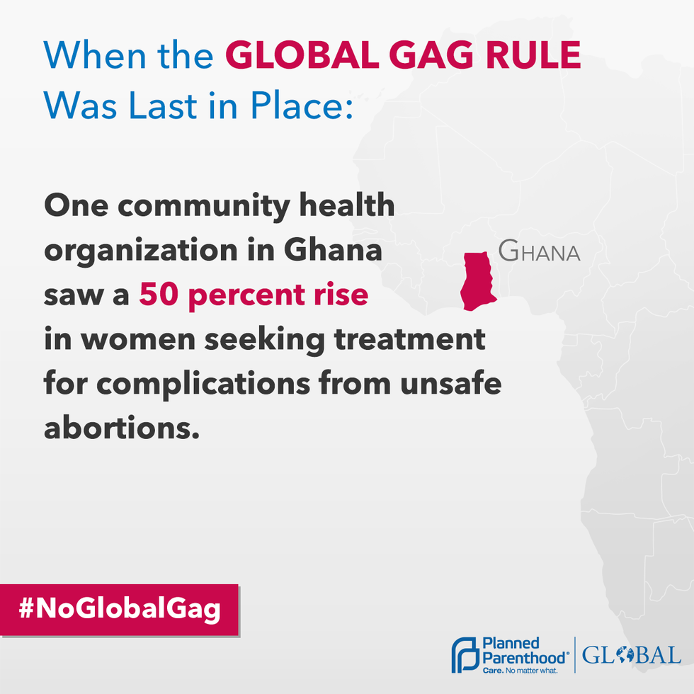What the Global Gag Rule does is force American policy and thought down foreign NGO throats. They literally gag and are forced to close their doors resulting in the end of not only abortion services, but HIV/AIDS counseling, STI services and other family planning services. Women are harmed and NGOs that use foreign aid dollars’ efficiency are forced to close just because of what some men in Washington think is right.