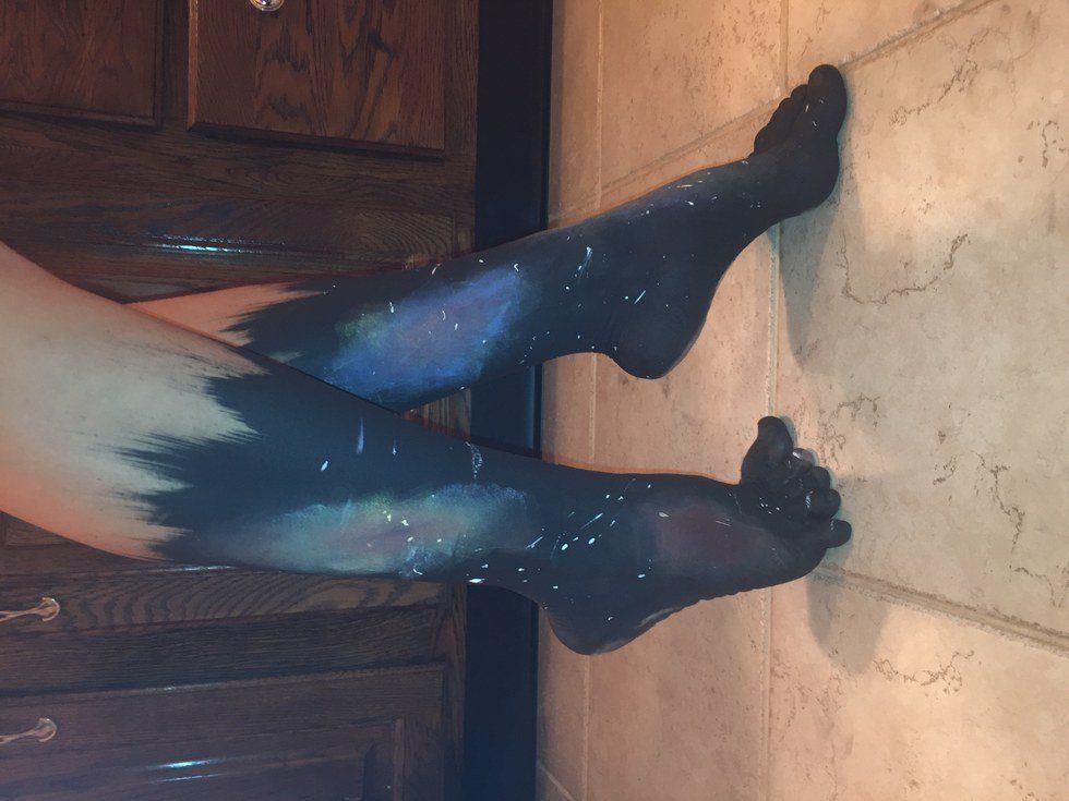 Mix the white cream paint with some water so it will be easier to splatter. Mix enough until you can easily splatter it. I use this method instead of with the water based white because I didn't want it to get too watery and just look like water drops which would just wash it off. Splatter on stars and paint any constellations you want. I used my nails to splatter the paint but you could also use a toothbrush or stiff paint brush. When your finished, dance among the stars