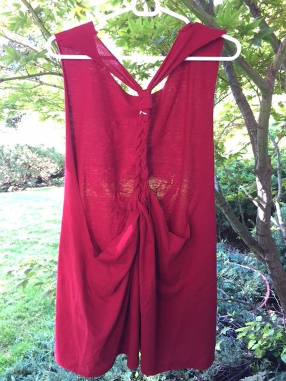 - To make your braided-back shirt look cleaner, you can take a scrap piece of cloth (I used mine from the sleeves I cut off), about an inch thick, and wrap it around where the collar and the braid meets, sewing (or gluing if you prefer) on the inside of the braid/shirt so the seams don’t show.
