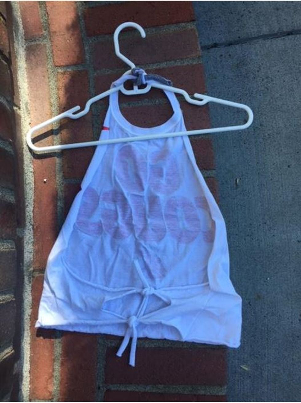 The first type of spirit clothing is probably the most basic. I’m sure you’ve seen it everywhere at your school, and if you haven’t, you’ve probably seen it online before. This is the shirt where a triangle is cut out of the front. It’s a great way to make an old college tee into something new without spending any money. For all of these looks, I also recommend fabric scissors for a clean, precise cut.