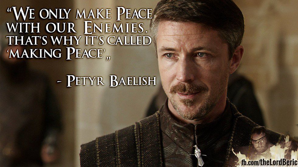 The ultimate sleazeball. The guy you can never quite read. Some might call him "frat." I can never trust Lord Baelish, but I think that's what makes us still believe in him and hope that he will use his powers for good. (Kind of like the guy you've been trying to get to commit to you but probably never will). That kind of hope.
