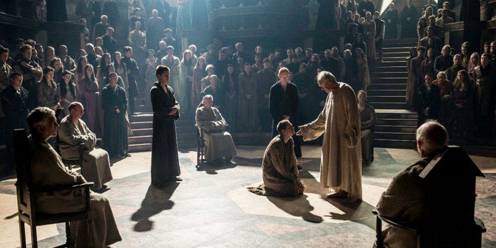 In my opinion, the most shocking scene of the entire episode was when the King of the Andals and the First Men, Lord of the Seven Kingdoms, and Protector of the Realm, Tommen Baratheon took his own life. It all starts in a previous episode this season, when Margaery Tyrell, the Queen, gives her grandmother and head of her house a rose to symbolize her faith to her house, not the the Seven. With this symbol, I thought that Margaery was in on the plan to destroy the Septum with the Queen Mother, Cersie Lannister. However, Cersie, who is clearly behind the destruction of the Septum and the murder of the Queen, had no intention of saving her daughter-in-law. When Tommen is late the Septum, stopped by the Mountain from leaving his chambers, he witnesses the Septum, where his wife was, blow up. I assumed that Tommen would accuse his mother of the murder of so many innocent lives.