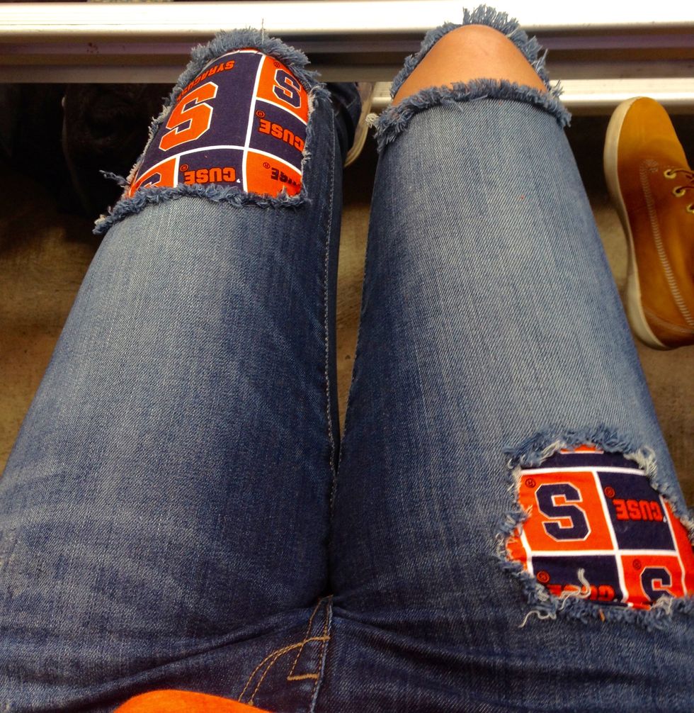 Layering is completely underrated. Cut some of your favorite fabrics, flannel, or anything fabric in the color of your school and sewing it under a pair of your ripped jeans can add so much to your outfit. Or, you can layer a t-shirt on top of a patterned long sleeve!
